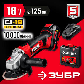 ЗУБР С1-18, 18 В, 125 мм, 1 АКБ (4 А·ч), УШМ, кейс (УШМ-18-125-41)