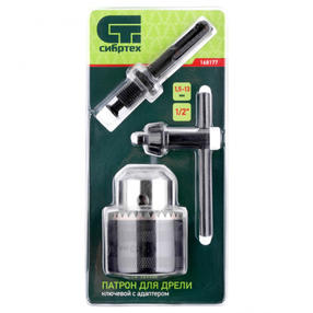 Патрон для дрели ключевой 1,5–13 мм – 1/2", адаптер SDS PLUS// Сибртех 168177