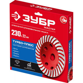 ЗУБР Турбо, d 230 мм, сегментированная алмазная шлифовальная чашка (33375-230)