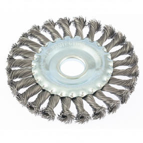 Плоская щетка Matrix 74632 диаметром 125 мм и посадкой 22,2 мм, с крученой проволокой 0,5 мм, устанавливается на вал УШМ. Щетина с крученой проволокой эффективно удаляет толстый слой ржавчины, лакокрасочных материалов и загрязнения с поверхностей при проведении грубой (черновой) обработки. Плоская форма позволяет обрабатывать труднодоступные места, в т.ч. углы и изгибы. Рекомендуется использовать щетку на оборотах не более 10000 об/мин. Преимущества За счет высококачественной нержавеющей проволоки обеспечивается долговечность щетины. Универсальная щетка рассчитана на обработку твердых поверхностей из любых материалов: металла, древесины, цветных металлов, пластика и т.д. Щетку можно использовать вне помещений, т.к. щетина покрыта маслом, а корпус оцинкован. 500,00 ₽ / шт
