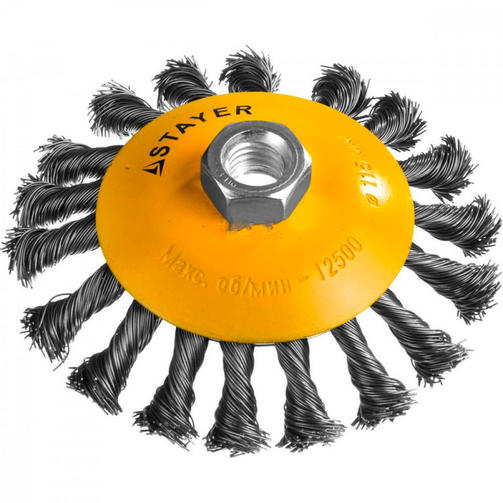 STAYER 115 мм, жгут. сталь. пров. 0.5 мм, коническая щетка-крацовка для УШМ,Professional (35135-115)