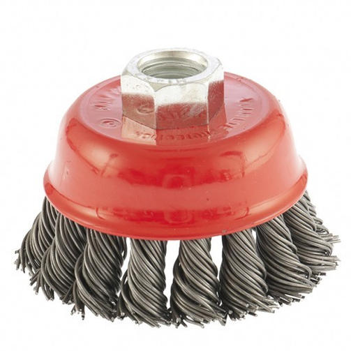 Щетка Matrix «Чашка» 74621 диаметром 65 мм, М14, с крученой проволокой 0,8 мм, применяется в качестве оснастки на УШМ. Щетина рассчитана на грубую (черновую) обработку поверхностей, более агрессивную в сравнении с щетиной 0,5 мм. Изделие подходит для удаления загрязнений, снятия толстого слоя ржавчины, ЛКМ, зачистки сварных швов. Рекомендуемая скорость использования — 12500 об/мин. Преимущества Благодаря высококачественной проволоке оснастка прослужит долгое время. Благодаря форме «чашка» насадка имеет большую площадь прилегания, поэтому оптимально подходит для обработки больших поверхностей. Щетку универсального назначения можно использовать для обработки любых твердых материалов: металла, древесины, цветных металлов, пластика и др. Корпус покрыт эмалью, а щетина — маслом, за счет чего щетка устойчива к коррозии. 450,00 ₽ / шт