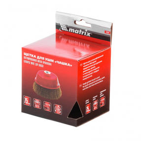 Щетка «чашка» Matrix 74604 75 мм с латунированной витой проволокой устанавливается на вал УШМ с помощью гайки М14. С ее помощью можно обработать поверхности для снятия тонкого слоя краски или лака, удаления ржавчины и загрязнений. Чашкой диаметром 75 мм можно быстро обработать большие площади при рекомендованных оборотах 12500 об/мин. Преимущества Долговечность — щетина выполнена из высококачественной стальной проволоки. Универсальность — набор подходит для любых твердых поверхностей: древесины, металла, пластика и т.д. Аккуратная работа — щетки с витой щетиной позволяют снять тонкий слой материала. Коррозионная стойкость — корпус щетки покрыт защитной эмалью, щетина латунирована. 410,00 ₽ / шт