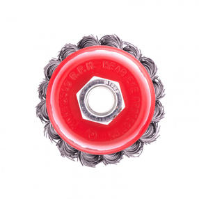 Щетка Matrix «Чашка» 74620 диаметром 65 мм, М14, с крученой проволокой 0,5 мм, применяется в качестве оснастки на УШМ. Щетина рассчитана на грубую (черновую) обработку поверхностей. Изделие подходит для удаления загрязнений, снятия толстого слоя ржавчины, ЛКМ, зачистки сварных швов. Рекомендуемая скорость использования — 12500 об/мин. Преимущества Благодаря высококачественной проволоке оснастка прослужит долгое время. Благодаря форме «чашка» насадка имеет большую площадь прилегания, поэтому оптимально подходит для обработки больших поверхностей. Щетку универсального назначения можно использовать для обработки любых твердых материалов: металла, древесины, цветных металлов, пластика и др. Корпус покрыт эмалью, а щетина — маслом, за счет чего щетка устойчива к коррозии. 468,00 ₽ / шт