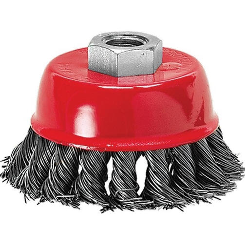 Щетка Matrix «Чашка» 74624 диаметром 75 мм, М14, с крученой проволокой 0,5 мм, применяется в качестве оснастки на УШМ. Щетина рассчитана на грубую (черновую) обработку поверхностей. Изделие подходит для удаления загрязнений, снятия толстого слоя ржавчины, ЛКМ, зачистки сварных швов. Рекомендуемая скорость использования — 12500 об/мин. Преимущества Благодаря высококачественной проволоке оснастка прослужит долгое время. Благодаря форме «чашка» насадка имеет большую площадь прилегания, поэтому оптимально подходит для обработки больших поверхностей. Щетку универсального назначения можно использовать для обработки любых твердых материалов: металла, древесины, цветных металлов, пластика и др. Корпус покрыт эмалью, а щетина — маслом, за счет чего щетка устойчива к коррозии. 608,00 ₽ / шт