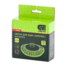 Щетка для УШМ, 100 мм, М14, "тарелка", витая проволока 0.3мм// СИБРТЕХ 746087