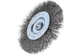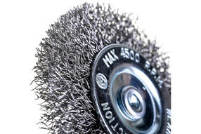 Плоская щетка для дрели Сибртех 744487 диаметром 75 мм, со шпилькой, с щетиной из витой проволоки 0,3 мм, используется для щадящей обработки металлических, деревянных и пластиковых поверхностей. Удаляет загрязнения, ржавчину, старые лакокрасочные покрытия. Благодаря плоской форме щетка идеально подходит для очистки труднодоступных мест, пазов, изгибов, внутренних углов. Хвостовик диаметром 6 мм устанавливается в патрон дрели. Рекомендуемая скорость вращения 4500 об/мин. Во время работы следует использовать средства индивидуальной защиты. Щетку применяют во время строительства, ремонта, а также в быту. Преимущества: Витая проволока диаметром 100 мм более мягко воздействует на поверхность, чем крученая, поэтому щетку можно использовать для создания необходимой шероховатости или для выявления структуры материала, например, древесины. Для изготовления щетины использована высококачественная сталь, что увеличивает срок службы оснастки. Корпус насадки имеет цинковое покрытие, а щетина покрыта техническим маслом, что обеспечивает защиту от коррозии. 340,00 ₽ / шт