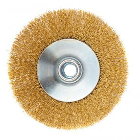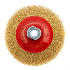 Щетка Matrix «тарелка» 74616 диаметром 125 мм, с витой проволокой, М14, устанавливается на вал УШМ. Витая проволока подходит для щадящей обработки поверхностей, снятия тонкого слоя ржавчины, лакокрасочных покрытий и загрязнений. Универсальная форма «тарелка» позволяет использовать щетку для зачистки углов и плоскостей. Рекомендуемая скорость использования — 12500 об/мин. Преимущества Высокий ресурс — щетина выполнена из стальной проволоки высокого качества. Универсальное назначение — можно обрабатывать любые твердые материалы: металл, древесину, цветные металлы, пластик и т.д. Коррозионная стойкость — латунированная щетина и корпус покрытый эмалью не боятся ржавчины, что позволяет использовать изделие вне помещений. 665,00 ₽ / шт