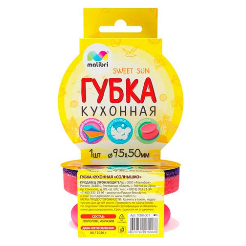 Малибри Malibri Губка кухонная Солнышко 1шт/48