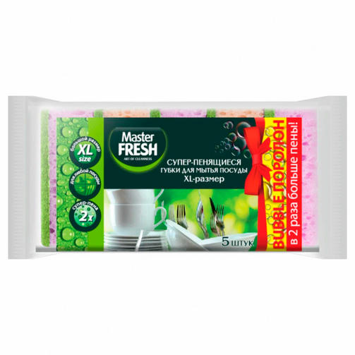 Губки для мытья посуды Master FRESH "XL bubble-поролон"имеют большой размер, а макропористая структура поролона способствует обильному пенообразованию (в два раза больше активной пены). Губки "XL bubble-поролон" имеют яркую окраску и оливковую фибру повышенной плотности. Благодаря своей структуре и увеличенному размеру они эффективно удаляют загрязнения и значительно экономят моющее средство. 83,57 ₽ / шт