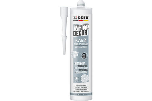 Клей (жидкие гвозди) ZIGGER WHITE DECOR акриловый для декора, белый 280мл/400г