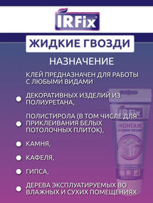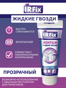 Клей универсальный IRFIX МОНТАЖ 250 мл прозрачный (прозрачный после отвердения, водный)