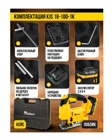 Лобзик аккум. 18V UNI-M Standard, дерево/металл 100/5мм, Kolner KJS 18-100-1K, быстрозажимной патрон