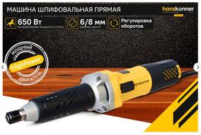 HGD0665 Машина шлифовальная прямая Hanskonner PLATINUM, 650Вт, 10000-30000об/мин, цанги 6/8мм, каб 4
