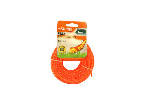 GT3535-4.0-S-15 Леска для триммера, d=4.0 мм, l=15м, КРУЧЕНЫЙ КВАДРАТ,оранж. картон,Sturm!