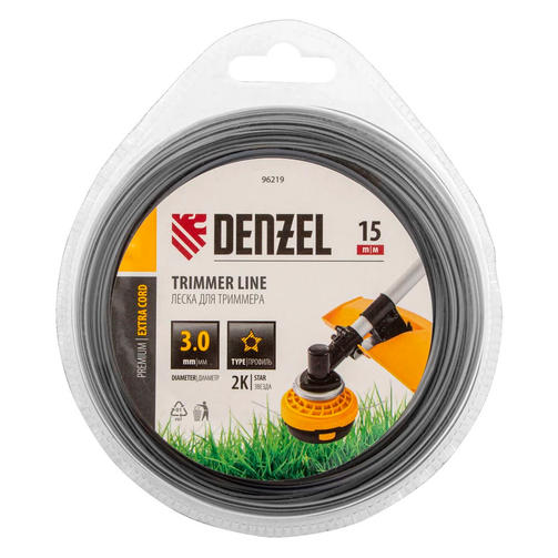 Леска для триммера двухкомпонентная звезда, 3,0мм х 15м, блистер EXTRA CORD, Denzel 96219