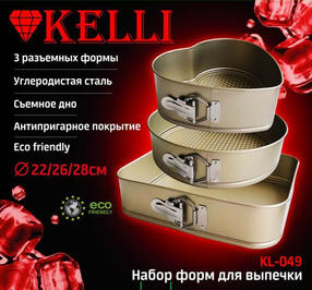 3 разъемных формы с антипригарным покрытием Размеры: Квадратная: 28х6.8см Круглая: 26х6.8см В форме сердца: 22х6.8см Высококачественные материалы Легко чистится Съемное дно 1 700,00 ₽ / шт