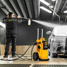 Моечная машина высокого давления Denzel K 70 Power 58272 мощностью 2500 Вт и производительностью 600 л/ч, с асинхронным двигателем, обеспечивает подачу воды под давлением до 180 бар. Позволяет при помощи струи воды отмыть фасад дома, дорожку, тротуар, садовую мебель, технику и инструменты, автомобиль, окна и т.д. Машина оснащена самовсасывающим насосом, поэтому может работать даже при отсутствии доступа к водопроводной сети, забирая воду из открытого источника. Надежный асинхронный двигатель с водяным охлаждением устойчив к нагрузкам и не требует сложного обслуживания. Машина оптимальна для бытового применения. Преимущества Высокий ресурс — профессиональная алюминиевая помпа с водяным охлаждением обеспечивает стабильное давление в течение длительного времени: испытаниями подтверждена возможность непрерывной работы на протяжении 700 часов. 4 насадки в комплекте — возможно распыление под углом 0, 15, 25 и 40° для наиболее эффективного решения поставленных задач. Эффективное очищение — возможно использование моющих средств, для этого предусмотрен специальный бачок с насадкой пеногенератора. Защита от засоров — фильтр входного штуцера препятствует попаданию посторонних частиц внутрь машины. Быстрая подготовка к работе — быстросъемный адаптер упрощает подключение входного шланга. Продуманная конструкция — сменные насадки и бачок для моющего средства крепятся на корпус машины, поэтому он всегда будут под рукой и не потеряются. Степень защиты IPX5 — внутренние элементы машины надежно изолированы от попадания влаги. Защита от непроизвольного запуска — для включения машины необходимо разблокировать рычаг моечного пистолета. Автоматический контроль давления — манометрический выключатель останавливает насос при прекращении подачи воды, перепускной клапан предотвращает превышение допустимого рабочего давления. Термозащита — в случае перегрева двигатель отключается для предотвращения поломки. Простое обслуживание — игла для прочистки сопла входит в комплект поставки. Мобильность — машину удобно перемещать благодаря телескопической рукоятке и большим колесам. Свободное перемещение по участку — длина шланга высокого давления составляет 8 м, длина кабеля — 5 м. Гарантия 3 года — надежность моечной машины подтверждена производителем. 16 300,00 ₽ / шт