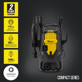 COMPACT SERIES: Компактные размеры и небольшой вес позволяют работать в ограниченном пространстве, на весу, а также хранить в собранном виде в небольшом помещении. 110 БАР: Высокое выходное давление позволит удалить даже въевшиеся загрязнения. ФУНКЦИЯ САМОВСАСЫВАНИЯ: Специальная конструкция насоса обеспечивает стабильный напор даже при минимальном давлении воды на входе мойки, а также позволяет забирать воду из емкости. AUTO STOP: Функция автоматической остановки мотора при отжатии спусковой кнопки пистолета, экономит воду и продлевает срок службы насоса. АЛЮМИНИЕВАЯ ПОМПА: Алюминиевая помпа обеспечивает высокую надежность, наилучший отвод тепла в процессе работы и долгий срок службы. РАЗБОРНЫЙ ПИСТОЛЕТ-РАСПЫЛИТЕЛЬ: Для удобства транспортировки и хранения мойки. РЕГУЛИРОВКА РАСПЫЛИТЕЛЯ: Позволяет изменить форму струи с мощной без распыления до веера под углом до 60°. В КОМПЛЕКТЕ: Пистолет высокого давления, удлинитель, распылитель, переходник, быстросъем для шланга 3/4, гибкий шланг высокого давления, игла для очистки сопла. Номинальная мощность: 1600 Вт Напряжение сети / Частота: 220±10%/50 В/Гц. Число оборотов на холостом ходу: 32000 об/мин Рабочее выходное давление: 70 Бар Максимальное выходное давление: 110 Бар Рабочий расход жидкости: 380 л/ч Максимальная температура воды: 50°С Длина напорного шланга: 5 м Длина шнура питания: 5 м Масса: 4,4 кг. Гарантия: 2 года Срок службы: 3 года В комплекте: пистолет высокого давления, удлинитель, распылитель, переходник, быстросъем для шланга 3/4, гибкий шланг высокого давления, игла для очистки сопла 6 100,00 ₽ / шт