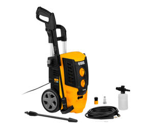 Колесная моечная машина высокого давления Denzel R-180 58238 мощностью 2200 Вт и производительностью 380 л/ч подает струю воды под давлением 180 бар и служит для очищения поверхностей. Позволяет быстро привести в порядок садовые дорожки, удалить пыль и грязь с фасада здания, автомобиля, велосипеда или мотоцикла, отмыть садовый инвентарь. Моечная машина подключается к водопроводу, а при его отсутствии может забирать воду из любого резервуара, работая в режиме самовсасывания. Устройство пригодится для поддержания порядка на загородном участке. Преимущества Надежность — двигатель с медной обмоткой выдерживает интенсивную эксплуатацию при высоких нагрузках. Стабильная работа — алюминиевая помпа обеспечивает постоянное давление даже при длительном использовании. Экологичность — мойка работает без вредных выхлопов, появление неприятных запахов исключено. Термозащита — в случае перегрева двигатель автоматически отключается для предотвращения поломки. Защита от случайного включения — конструкцией предусмотрена блокировка рычага пистолета. Безопасность пользователя — токопроводящие элементы надежно изолированы, машине присвоен класс защиты II. Чистая вода — встроенный фильтр задерживает посторонние примеси, продлевая срок службы мойки. Использование моющего средства — машина имеет встроенный бачок, также можно подключить внешний пеногенератор, входящий в комплект поставки. Регулировка количества пены встроенного пенокомплекта — можно подобрать оптимальный режим в зависимости от степени загрязнения поверхности. Максимальная эффективность — моечная машина комплектуется грязевой фрезой, позволяющей быстро справиться даже с застарелыми загрязнениями. Легкая подготовка к работе — благодаря быстросъемному адаптеру входной шланг подключается одним движением. Увеличенная рабочая зона — шланг длиной 8 м и 7-метровый кабель позволяют свободно перемещаться по участку. Простой уход — игла для прочистки сопла входит в комплект поставки. Комфортная транспортировка — машина оснащена колесами и ручкой для удобного перемещения. Удобное хранение — конструкцией предусмотрены держатель пистолета и кронштейн для сетевого кабеля. Гарантия 3 года — высокое качество моечной машины подтверждено производителем. 15 300,00 ₽ / шт