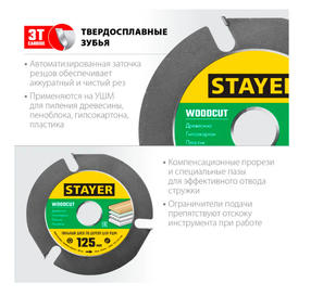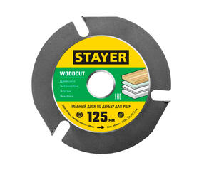 STAYER WOODCUT, 125 х 22.2 мм, 3 резца, для УШМ, пильный диск по дереву (36854-125)
