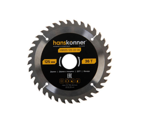 H9025-125-22-36 Пильный диск по дереву ArmorPiercing 125x22мм, 36 зубьев, Hanskonner