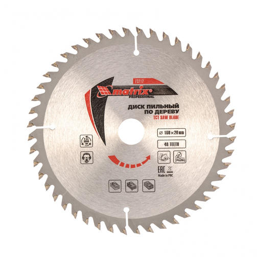 Пильный диск по дереву, 160 х 20 мм, 48 зуба, кольцо 16/20 Matrix Professional 73212