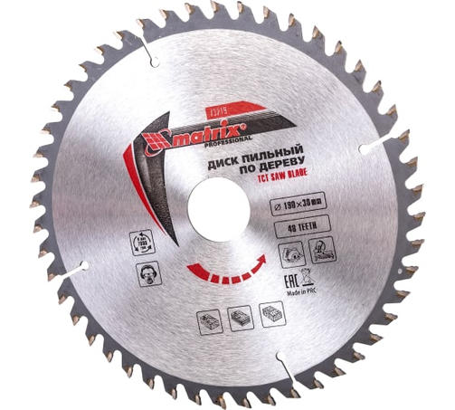 Пильный диск по дереву, 190 х 30 мм, 48 зубьев Matrix Professional 73219