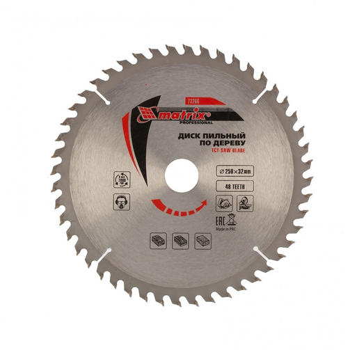 Пильный диск по дереву, 250 х 32 мм, 48 зубьев Matrix Professional73266