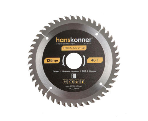 H9025-125-22-48 Пильный диск по дереву ArmorPiercing 125x22мм, 48 зубьев, Hanskonner