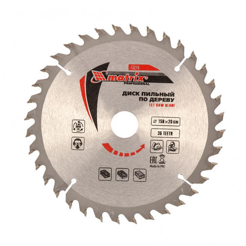 Пильный диск по дереву, 150 х 20 мм, 36 зубьев, кольцо 16/20 Matrix Professional73215