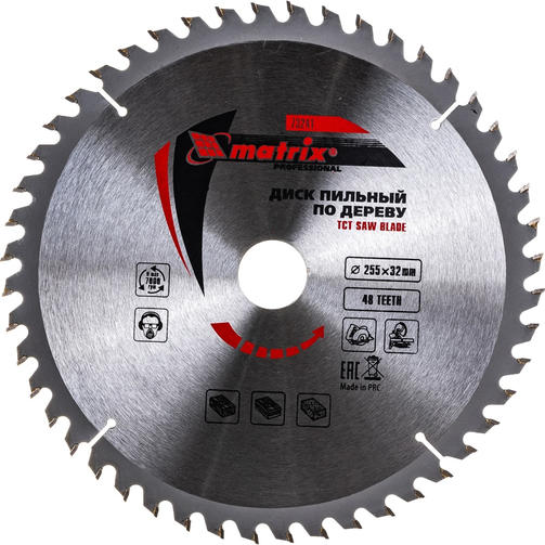 Пильный диск по дереву, 255 х 32 мм, 48 зубьев, кольцо 30/32 Matrix Professional73241
