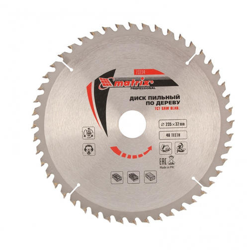 Пильный диск по дереву, 235 х 32 мм, 48 зубьев, кольцо 30/32 Matrix Professiona¶73234