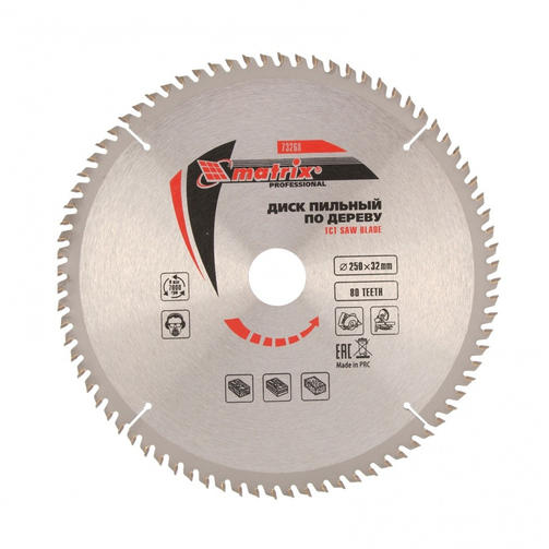 Пильный диск по дереву, 250 х 32 мм, 80 зубьев Matrix Professional73268