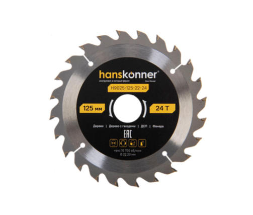 H9025-125-22-24 Пильный диск по дереву ArmorPiercing 125x22мм, 24 зуба, Hanskonner