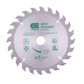 Пильный диск по дереву, 160 х 20мм, 24 зуба, + кольцо, 16/20 //СИБРТЕХ 732117