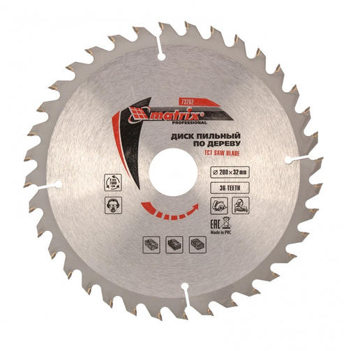 Пильный диск по дереву Matrix ф200 х 32 мм 73262 с 36 зубьями и переходным кольцом 32/30 применяется в качестве оснастки на циркулярных и торцовочных пилах с соответствующим внутренним и внешним диаметром. Он используется для продольного/поперечного реза материалов из мягкой и твердой древесины, ДСП, ДВП, фанеры, столярных плит. В комплект входит переходное кольцо 32/30 для возможности самостоятельного изменения посадочного диаметра при необходимости. Преимущества Средние зубья с попеременной заточкой обеспечивают оптимальное соотношение скорости и качества реза, диск подходит для бытового и профессионального применения. Основание выполнено из стали 65Mn, а режущая пластина - из сплава YG8 твердостью более 88 HRA, поэтому диск имеет высокий ресурс и долго сохраняет заточку. Зубья прошли алмазную заточку, что повышает эффективность реза и позволяет увеличить срок службы диска. Компенсационные прорези снижают риск заклинивания диска, делают рез максимально точным и стабильным. 673,00 ₽ / шт