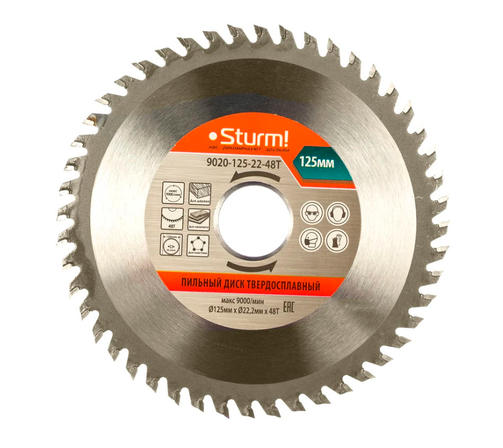 9020-125-22-48T Пильный диск, размер 125x22x48 зубьев, твердосплавные напайки Sturm!