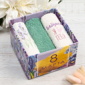 Набор Да Цвет Белый, Зелёный, Фиолетовый Для кого Для женщины Форма Квадратная Ткань Махра Плотность, г/м² 340 Размер, см 30 х 30 В упаковке, шт. 1 В наборе, шт. 3 Тематика Женская Вид упаковки Подарочная коробка, Термоусадочная плёнка Рисунок Да Тематика праздника 8 Марта Адресат Женщине Возраст Взрослый Материал Хлопок Декоративные элементы Вышивка Рекомендации по уходу Барабанная сушка при низкой температуре, Глажка при 150 °С, Не отбеливать, Стирка при 40 °С Назначение полотенец Для рук Состав ткани Хлопок Составляющие набора Полотенце В подарочной упаковке Да Особенности Вышивка 450,00 ₽ / шт