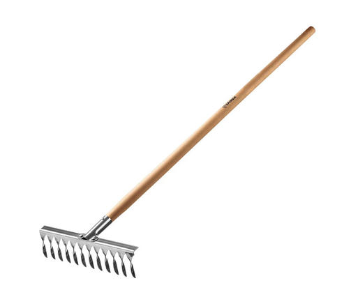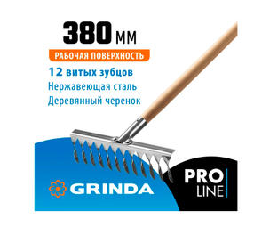 GRINDA PS-12 WOOD, 370 х 105 х 1300мм, 12 витых зубцов,нерж.сталь,деревянный черенок,грабли 39481-12