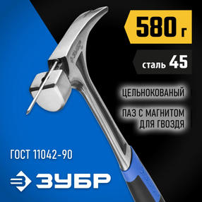 ЗУБР 560 г, цельнокованый столярный молоток-гвоздодёр, Профессионал (20258-580)