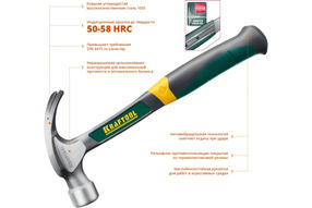 KRAFTOOL Thor, 560 г, цельнокованый столярный молоток-гвоздодёр (20270)