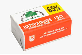 Традиционное 65% хозяйственное мыло, созданное на основе растительного сырья. Хозяйственное мыло конкурентоспособно по цене и хорошо мылится в воде любой жесткости и полностью смывается водой. Состав Натриевые соли жирных кислот натуральных жиров и масел, вода, кальцинированная сода, натр едкий, хлорид натрия, комплексообразователь тетранатрий ЭДТА, диоксид титана, антиоксидант-пластификатор. 35,00 ₽ / шт