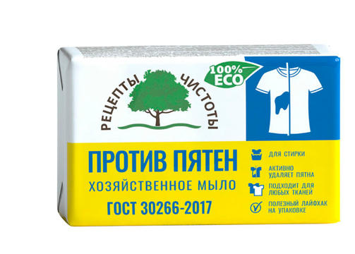 Хозяйственное мыло «Против пятен» произведено по инновационным рецептурам без SLS (лаурилсульфат натрия). В состав мыла «Против пятен» входят активные компоненты, удаляющие пятна красящих напитков (чая, кофе, соков, красного вина), фруктов, овощей, травы, жирные пятна и т.д. Состав Натриевые соли жирных кислот натуральных жиров и масел, вода, кальцинированная сода, натр едкий, хлорид натрия, комплексообразователь тетранатрий ЭДТА, диоксид титана, антиоксидант-пластификатор, отбеливатели, CI 61554. 60,00 ₽ / шт