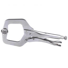 Ручной зажим Сибртех 18426 длиной 270 мм, с увеличенным захватом и подвижными губками, позволяет фиксировать и удерживать детали и заготовки в заданном положении. При этом руки мастера остаются свободными. Подвижные губки позволяют работать с предметами сложной формы. Зажим используется для сварочных, столярных, слесарных работ. Применяется во время проведения строительных и ремонтных работ, а также будет полезен дома, в гараже или на даче. Преимущества Долговечность — инструмент изготовлен из стали, поэтому обладает необходимыми прочностными характеристиками. Коррозионная стойкость — никелевое покрытие защищает инструмент от разрушения. Удобная работа с крупными деталями — зажим характеризуется увеличенным захватом. Регулировка захвата — специальный винт позволяет подобрать требуемую величину раствора губок. 1 110,00 ₽ / шт