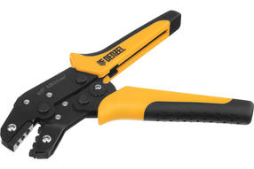 Клещи Denzel 17746 предназначены для обжима неизолированных кольцевых наконечников НК и вилочных НВ, разъемов плоских РП сечением 1,5-6 мм². Инструмент пригодится частным и профессиональным мастерам при проведении электромонтажных работ. Преимущества Долговечность — инструмент выполнен из конструкционной углеродистой стали, матрица для обжима (губки) закалена до твердости 450-600 HV. Высокая эффективность — трещоточный механизм позволяет производить соединение до полного обжима. Контроль качества соединения — при необходимости можно воспользоваться рычагом разблокировки инструмента. Широкий функционал — сменные матрицы легко снимаются, что позволяет работать с другим профилем. Комфортная работа — двухкомпонентные рукоятки эргономичной формы обеспечивают удобный захват, позволяют регулировать силу сжатия и препятствуют проскальзыванию инструмента. 3 200,00 ₽ / шт