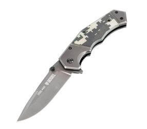 Многоцелевой складной нож Denzel 79207 длиной 205 мм, с системой Liner-Lock, накладкой G10 на эргономичной рукоятке, находит широкое применение при активном отдыхе на природе, во время рыбалки и охоты. Флиппер помогает быстро раскрывать нож. Преимущества Система Liner-Lock — такой тип замка позволяет раскрывать и закрывать нож одной рукой. Высокий ресурс и коррозионная стойкость — лезвие ножа выполнено из стали 440C твердостью 56-58 HRC с покрытием TiCN. Безопасная эксплуатация — двусторонний упор и эргономичная рукоятка с многослойной накладкой G10 из стеклотекстолита предотвращают соскальзывание руки на лезвие. Удобная транспортировка — нож оснащен стальной клипсой для фиксации на ремне. 2 285,00 ₽ / шт