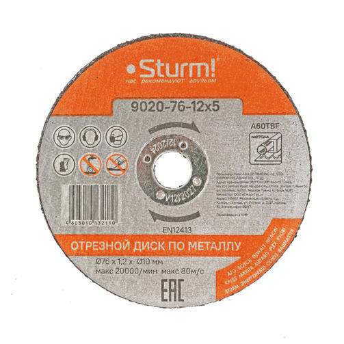 9020-76-12x5 Диск отрезной по металлу, размер 76x1.2x10, 5 шт., для CAG1276C Sturm! цена за шт