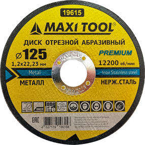 Диск отрезной 125-1.2-22.23мм19615Б по металлу прем.(25шт/50шт/400шт) MaxiTool