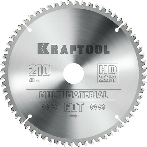 KRAFTOOL Multi Material, 210 х 30 мм, 64Т, пильный диск по алюминию (36953-210-30)